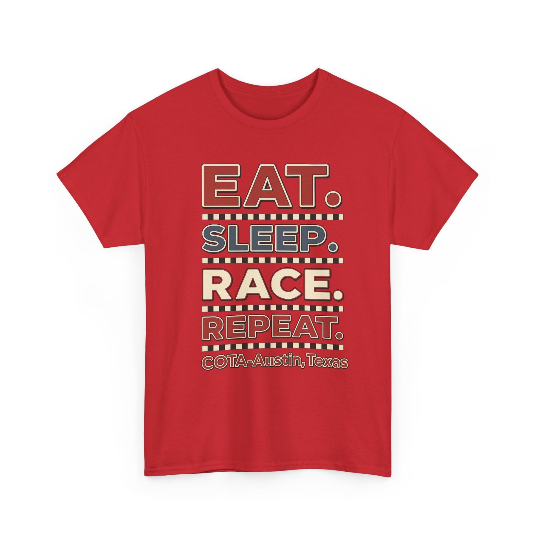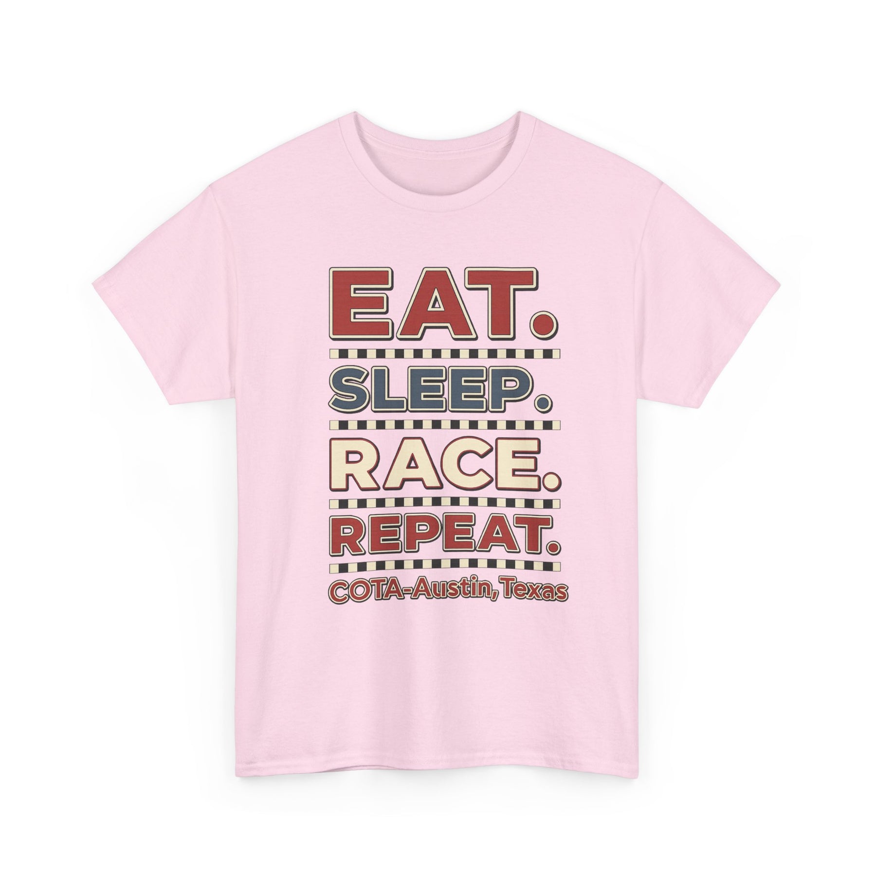 Whether you’re watching trackside at COTA or repping Austin’s motorsport culture from home, this tee says it all — Eat. Sleep. Race. Repeat.