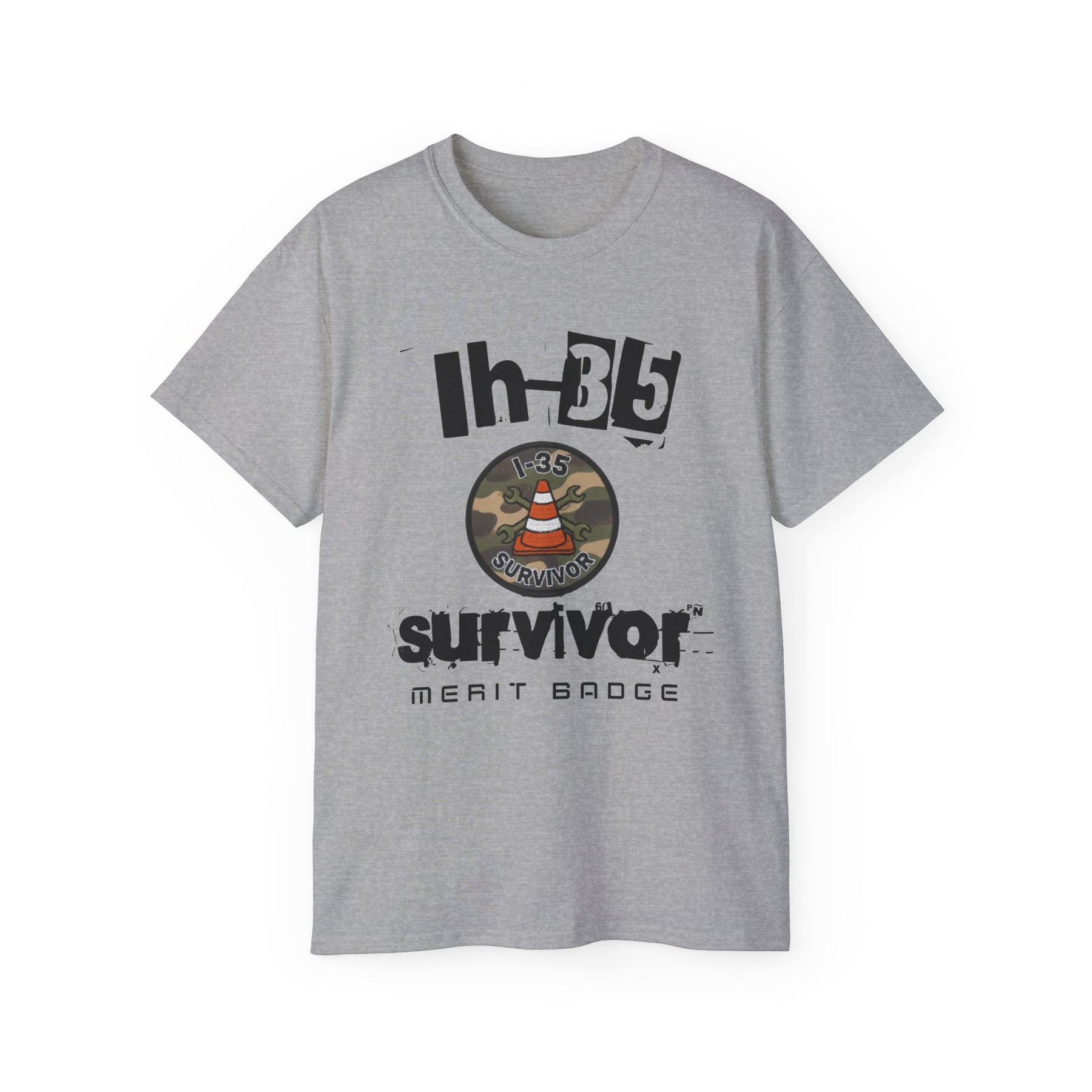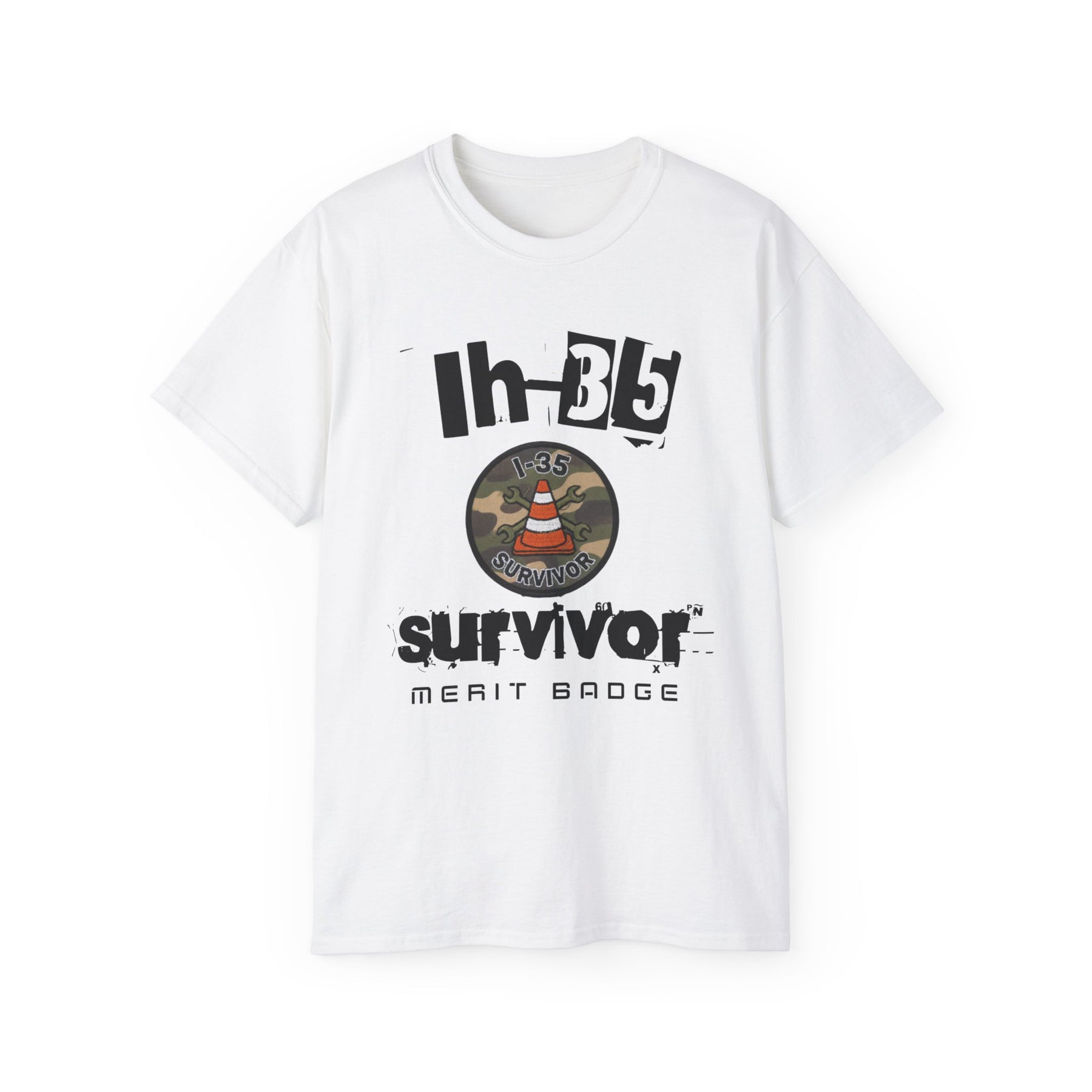 • Unisex fit, comfortable for everyday wear • “I-35 Survivor Merit Badge” camo patch-style design • High-quality print on soft, durable cotton • Great conversation starter for Austinites and Texas travelers • A fun gift for friends, family, or anyone stuck in I-35 traffic